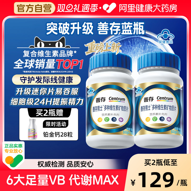善存蓝瓶男士复合维生素片矿物质b1b2b6增添活力成人生物素钙片