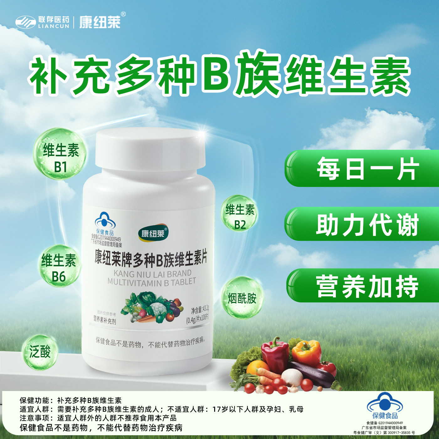 黄金搭档B族维生素片男女性复合VB b1 b2 b6 b12生物素叶酸牛磺酸