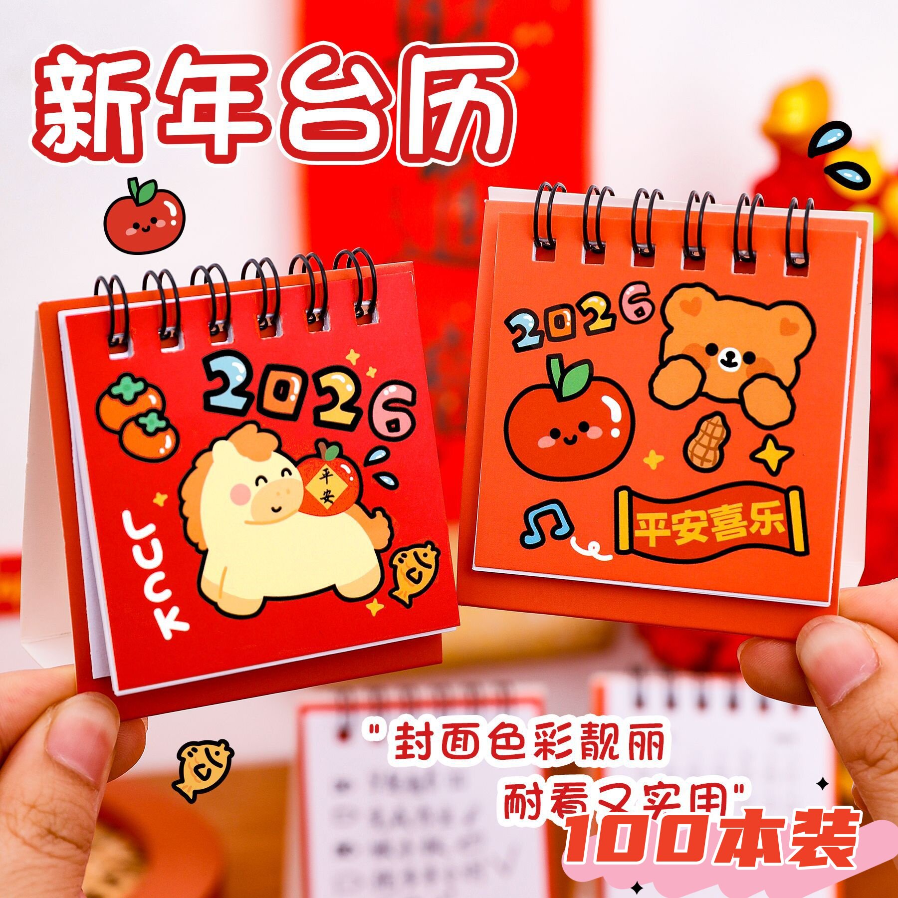 2026新年卡通台历迷你打卡日历可爱马年桌面装饰摆件小台历小礼品