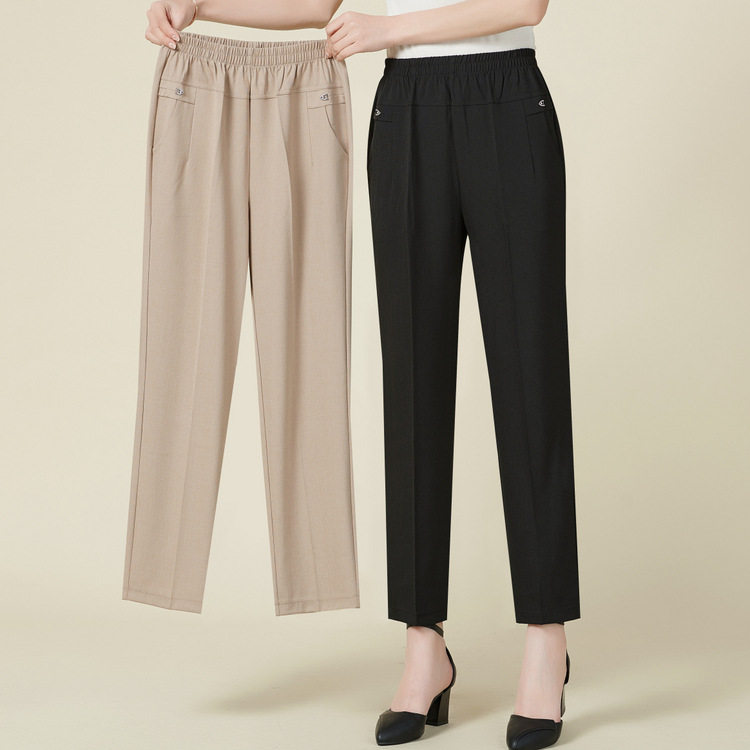 天丝棉中老年妈妈裤子松紧弹力高腰直筒女裤夏季薄款款休闲九分裤