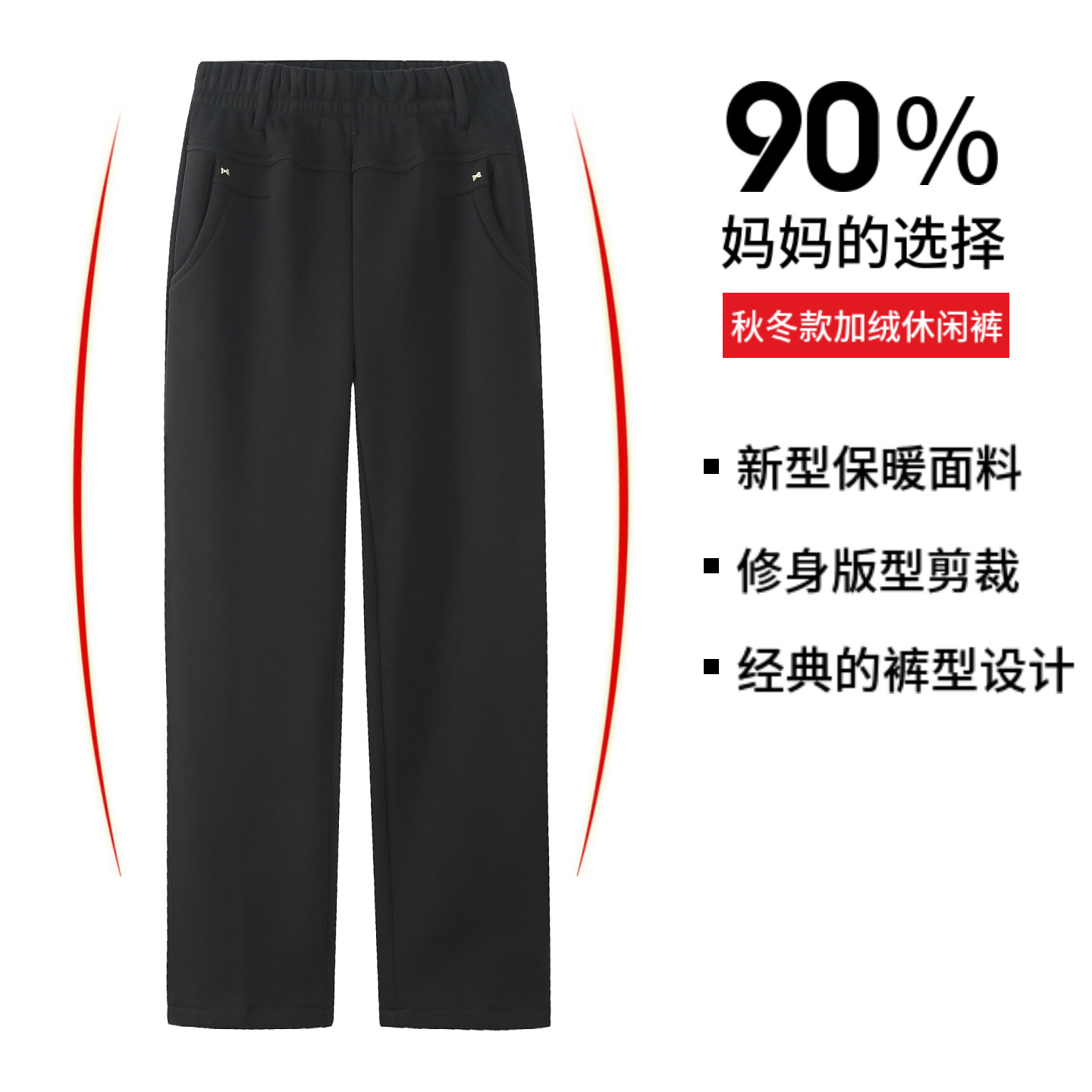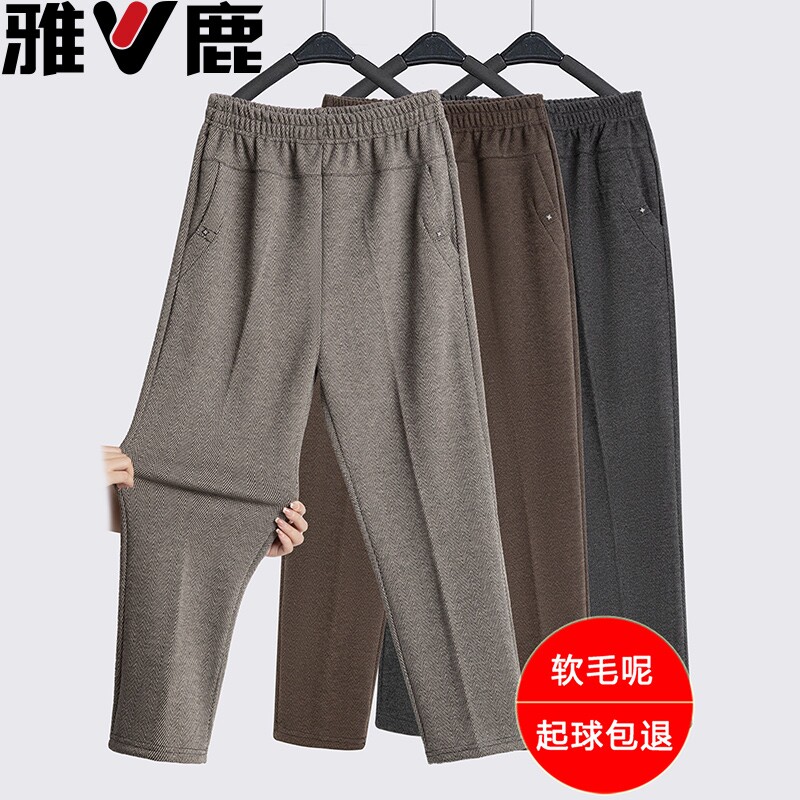 雅鹿中年妈妈裤春秋季加绒加厚直筒裤中老年人女裤奶奶冬休闲裤子