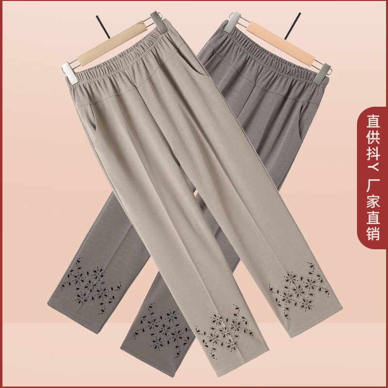 妈妈裤子春夏季新款高腰时尚老年人长裤宽松中老年女裤休闲直筒裤