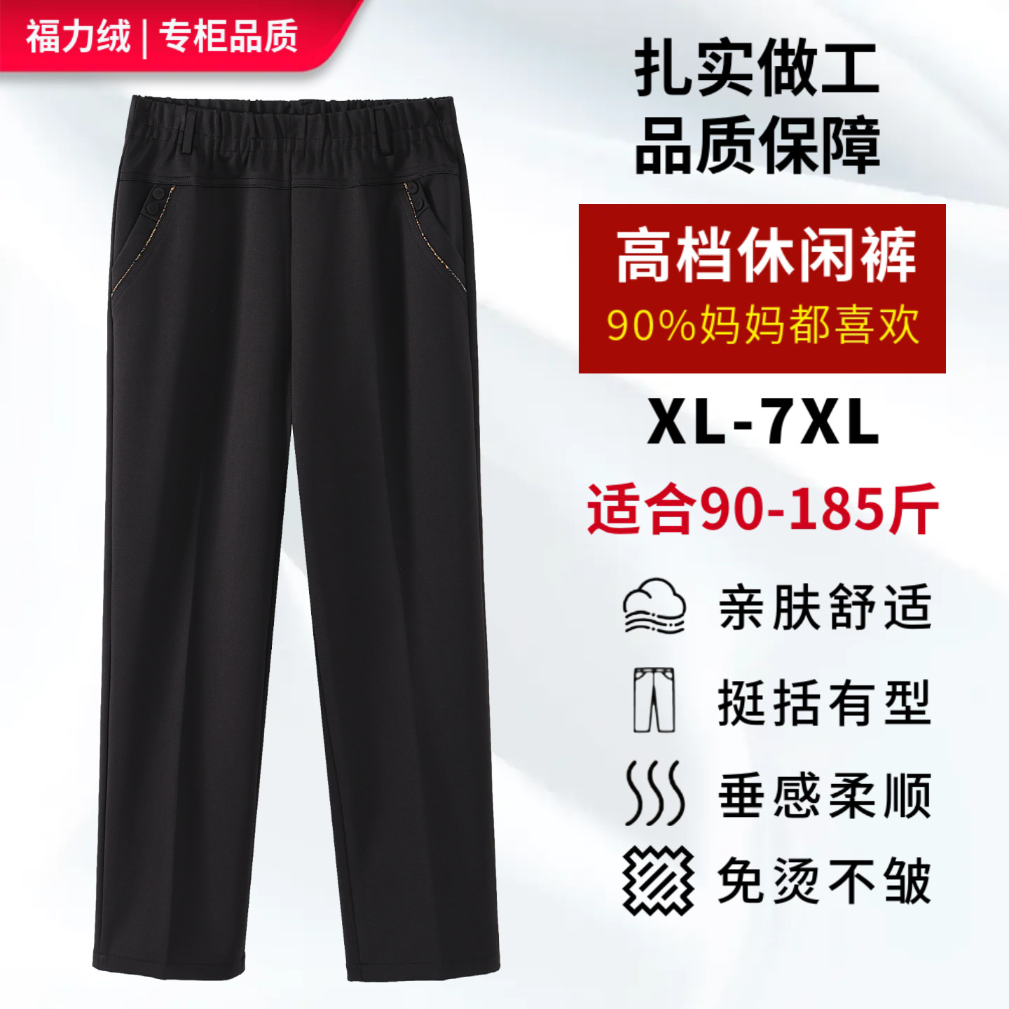 中年女裤外穿高腰大码宽松显瘦弹力加绒加厚纯色中老年休闲直筒裤