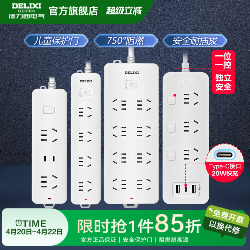 德力西插座插排插线板拖线板插板带线家用多功能正品转换器宿舍T