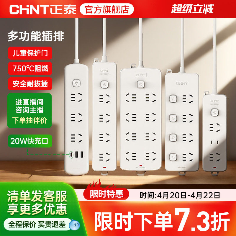 正泰插座插排拖线板插线板带线面板多孔排插带usb快充家用插板
