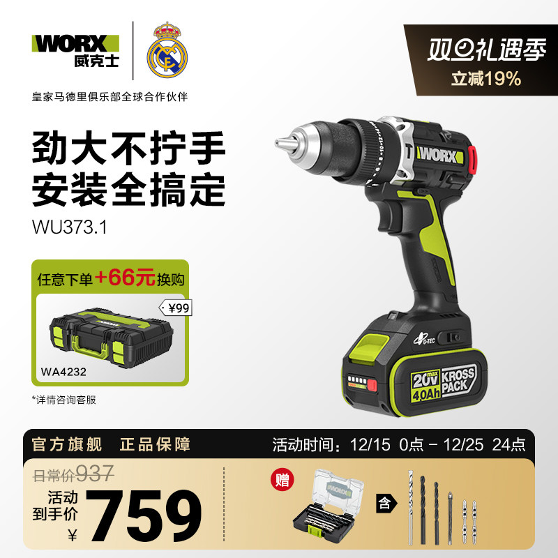 威克士95牛米大扭矩锂电冲击钻WU373充电手电钻电转电动工具WU193
