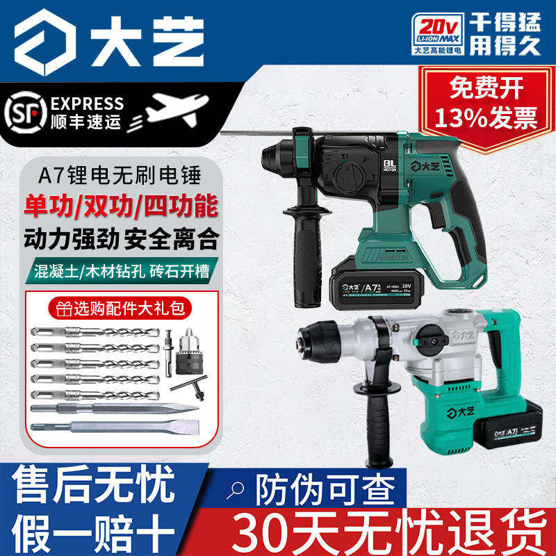 大艺充电电锤26mm无刷锂电冲击钻三用四多功能电镐A7电动工具6612