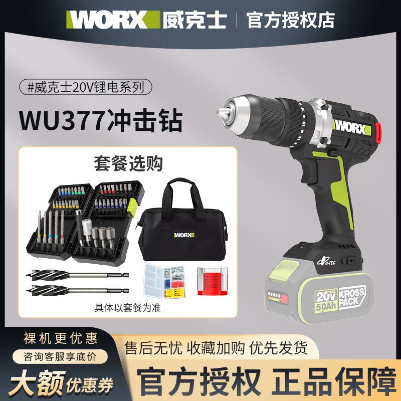 威克士多功能无刷锂电冲击钻WU377大扭力工业级充电电钻电动工具