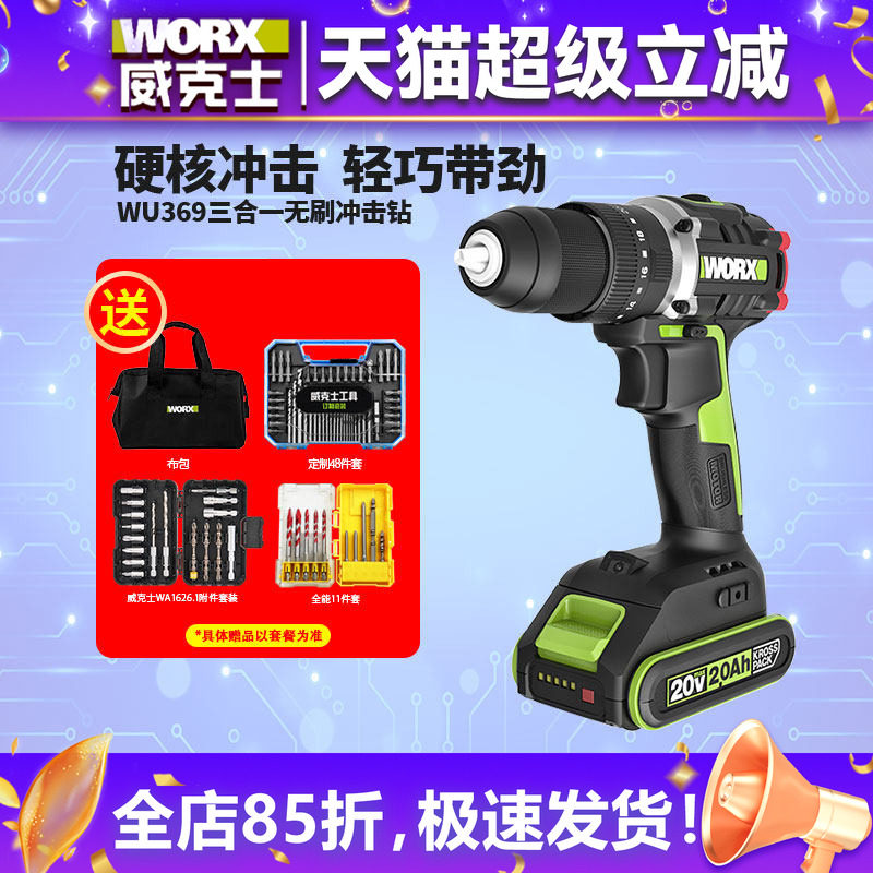 威克士无刷锂电冲击钻WU369X充电手电钻手钻家用电动工具WU173