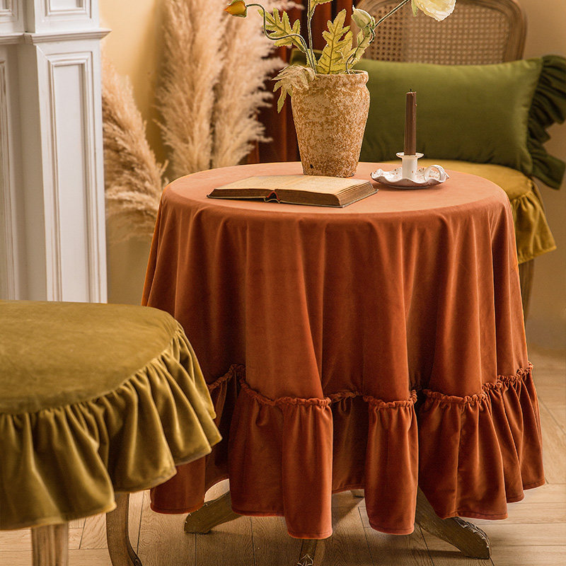范居态度罗马纯色法式丝绒圆桌布ins田园餐桌布台布茶几梳妆盖布