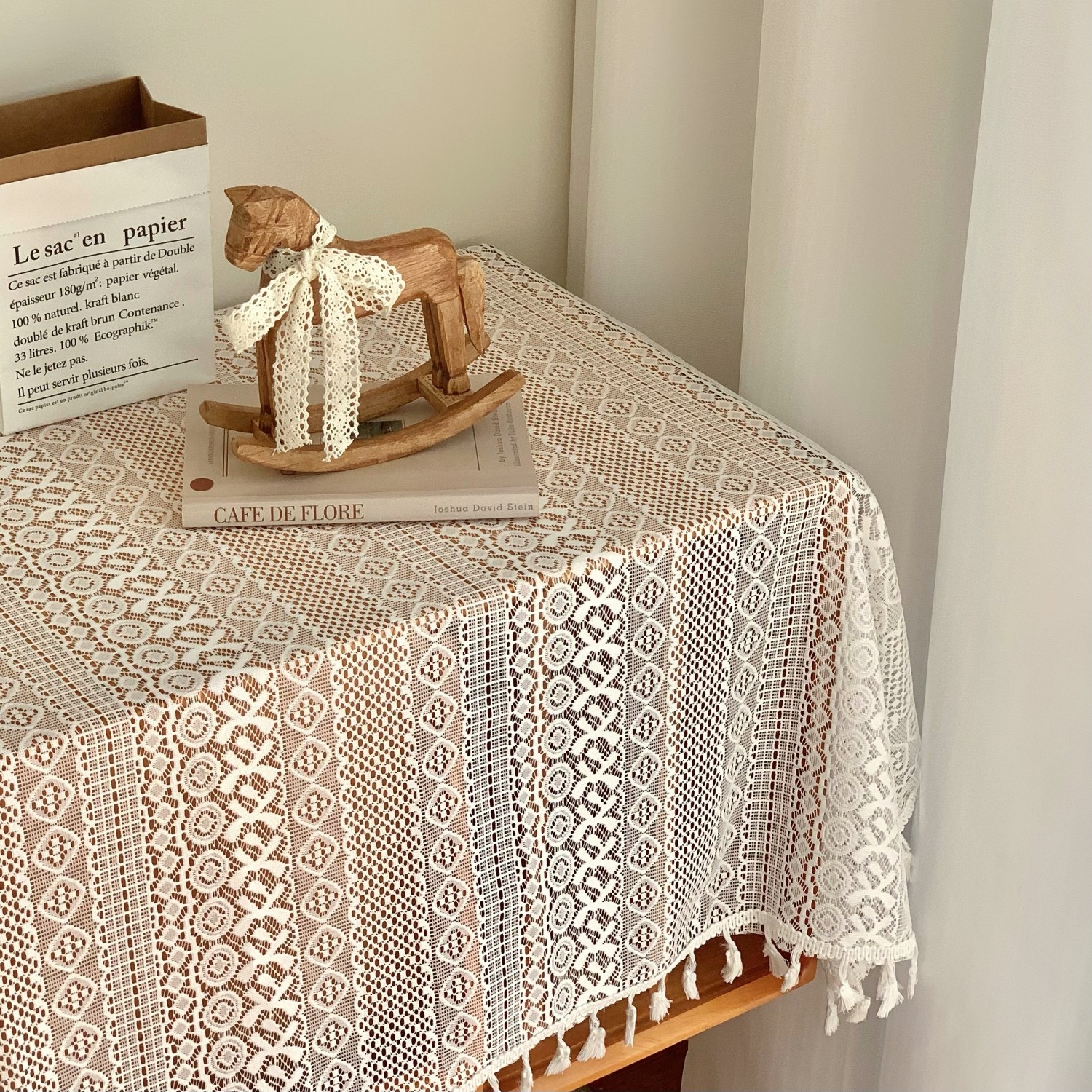 ins风长方形白色田园餐桌布复古镂空蕾丝桌布盖布圆桌圆形小台布
