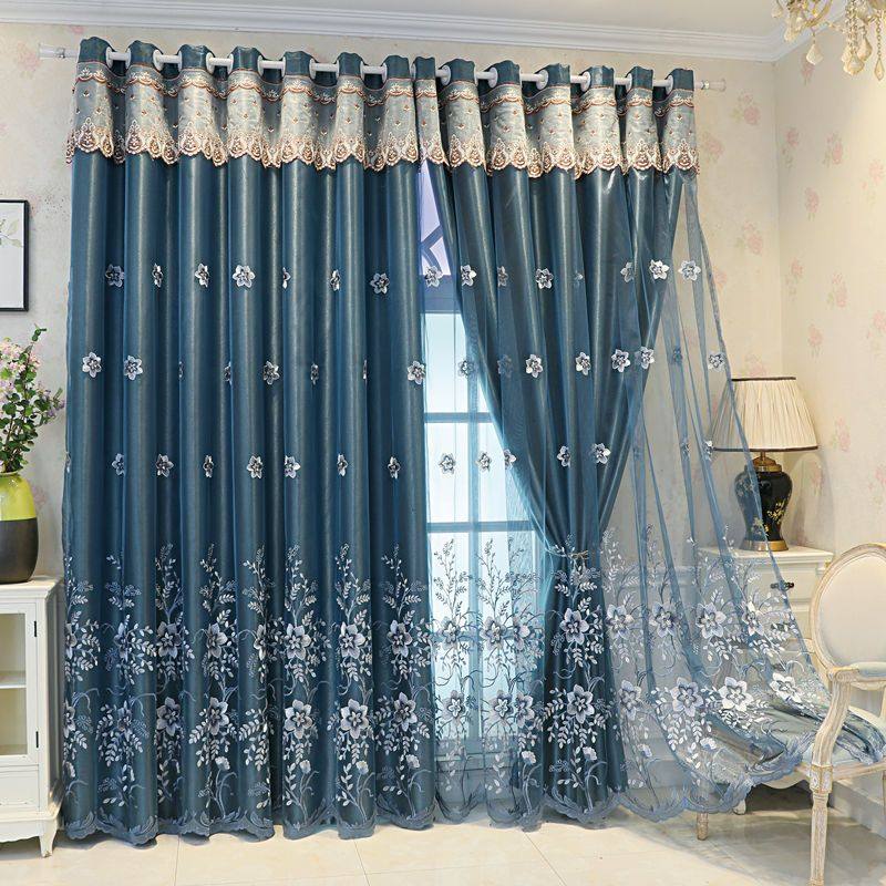 定制简欧小清新双层窗帘布纱一体成品浮雕绣花客厅卧室全遮光窗帘