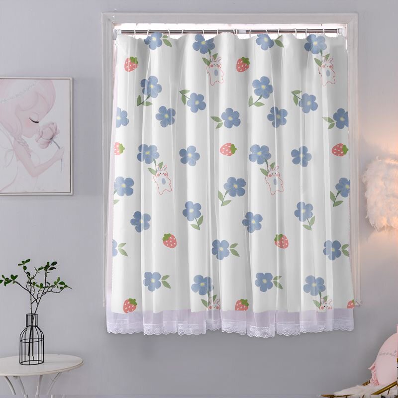 免打孔挂环式打孔遮光窗帘宿舍卧室飘窗厨房透光不透人纱帘布成品