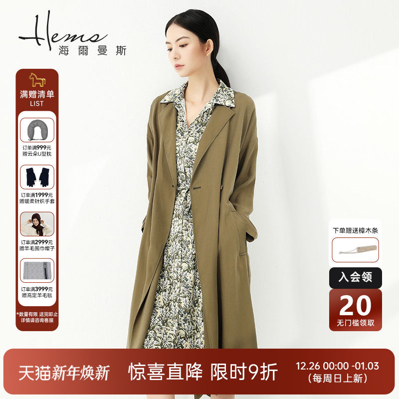 【商场同款】海尔曼斯简约春秋新款廓形女风衣中长款时尚气质外套