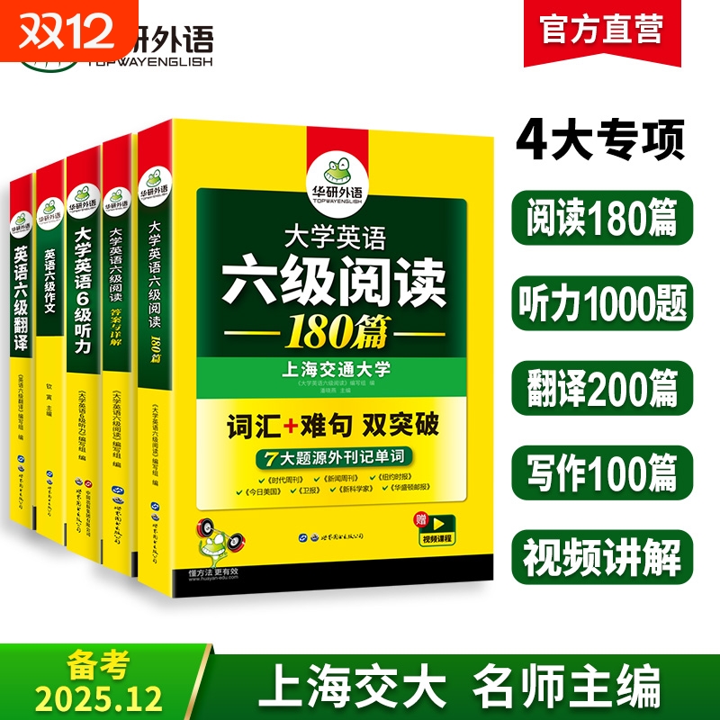 华研外语备考2025年12月英语六级专项训练全套资料大学英语阅读理解听力翻译写作文书考试历年真题试卷单词汇cet6四六级书交通淘金