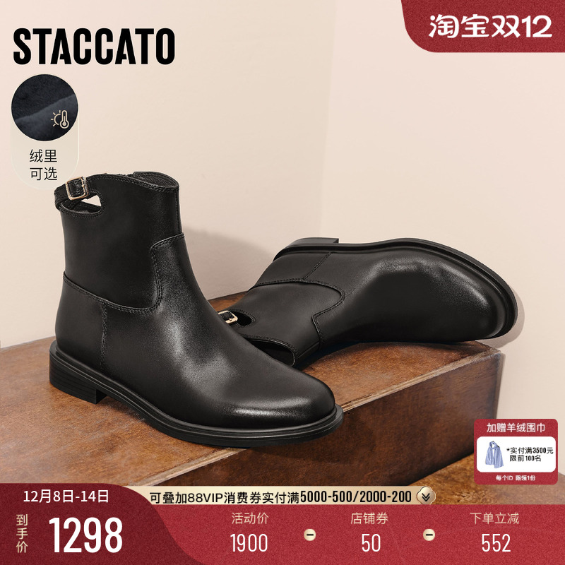 达芙妮方头小短靴女冬季平底女鞋加绒皮靴切尔西女靴瘦瘦马丁靴子