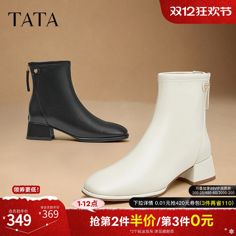 TATA他她奶皮靴法式气质短靴女靴通勤瘦瘦靴弹力靴冬季新WYX02DD4