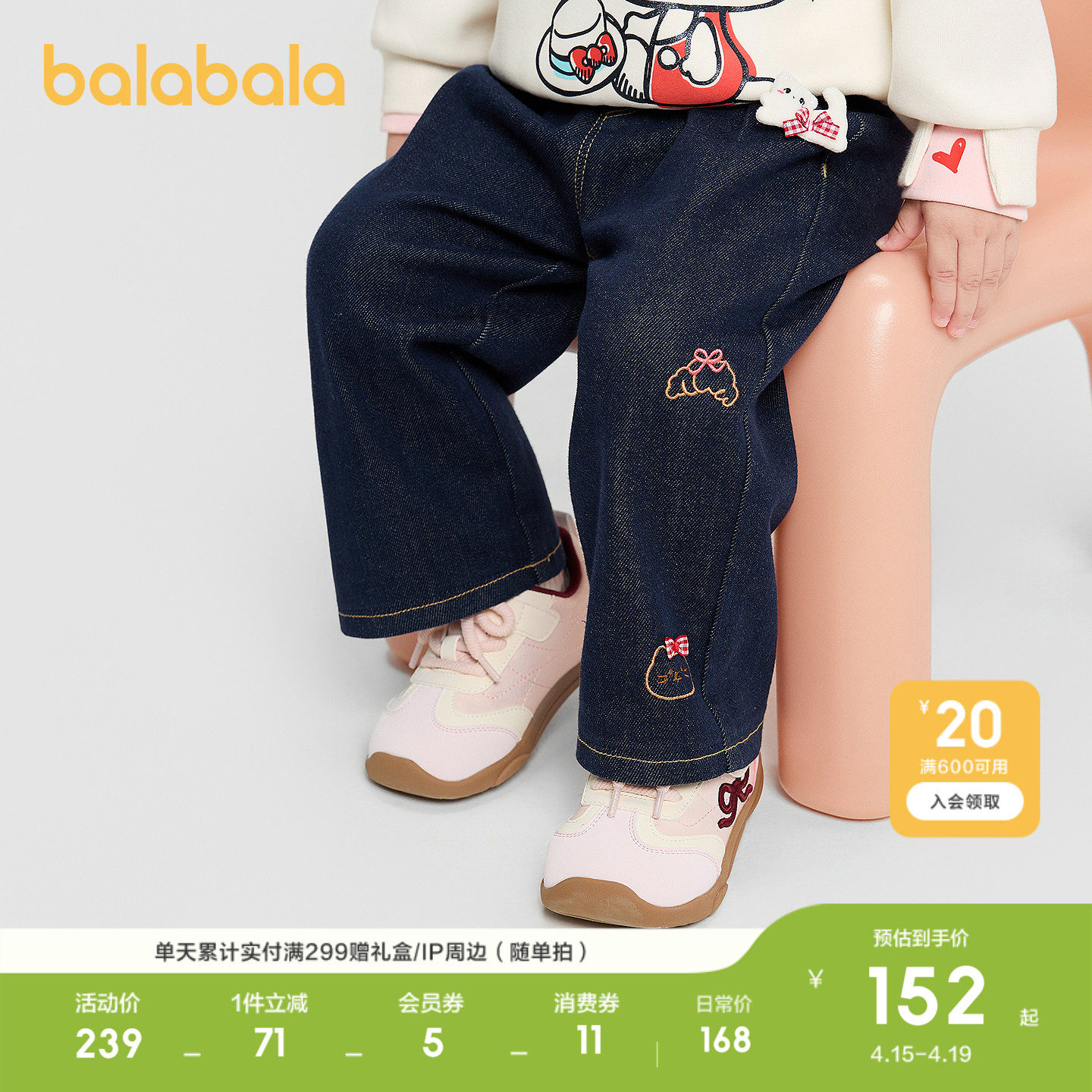 【商场同款】巴拉巴拉女童牛仔裤直筒裤秋冬2026休闲长裤绣花洋气