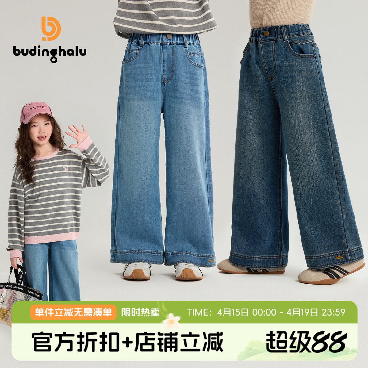 布丁哈鲁冬装女童童装洋气裤子2026春秋季新款儿童阔腿软牛仔裤