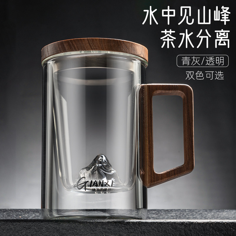 捷安玺泡茶杯大容量观山玻璃茶杯茶水分离家用男士专用喝茶水杯子