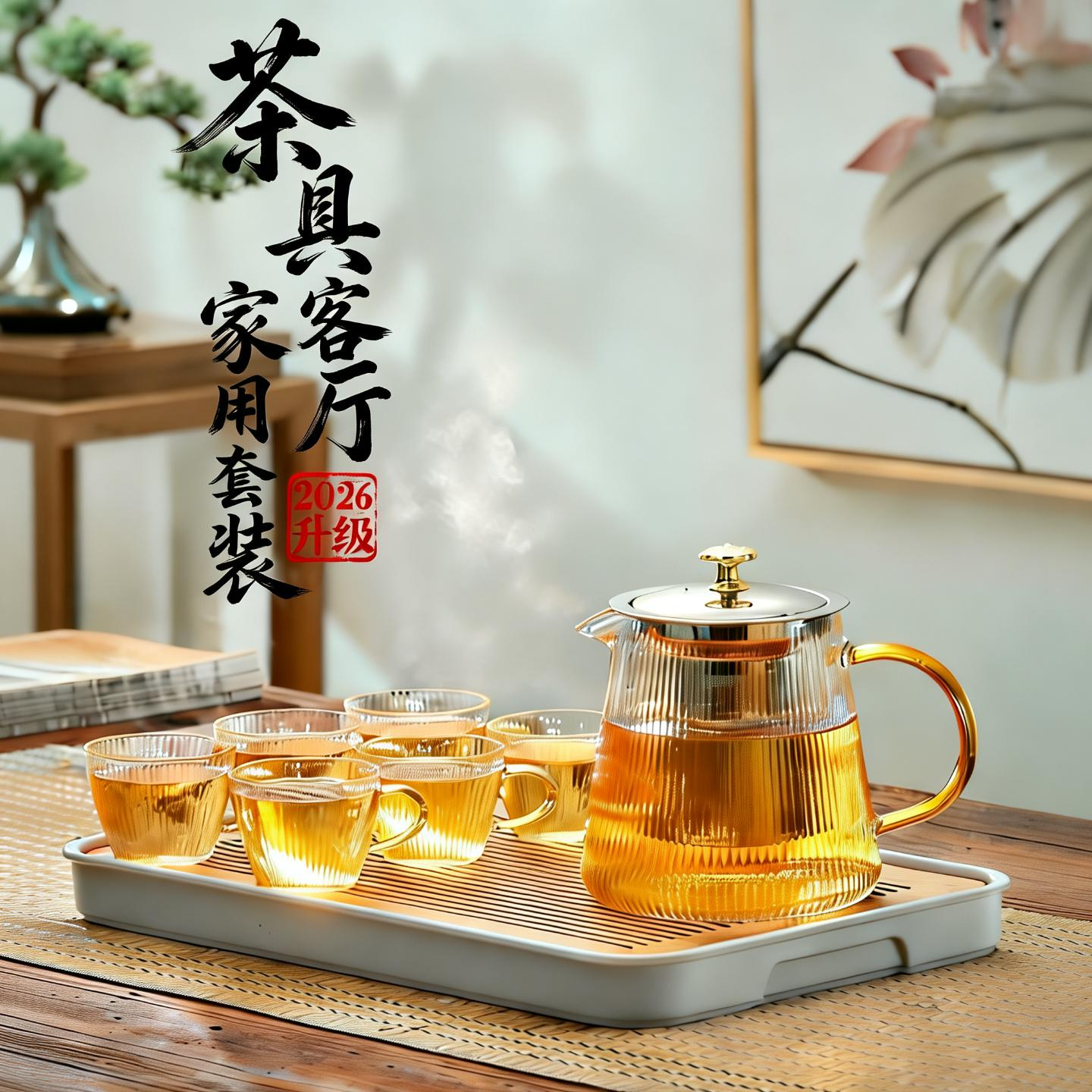 功夫茶具套装2025新款家用轻奢高档玻璃泡茶壶茶杯办公室会客喝茶