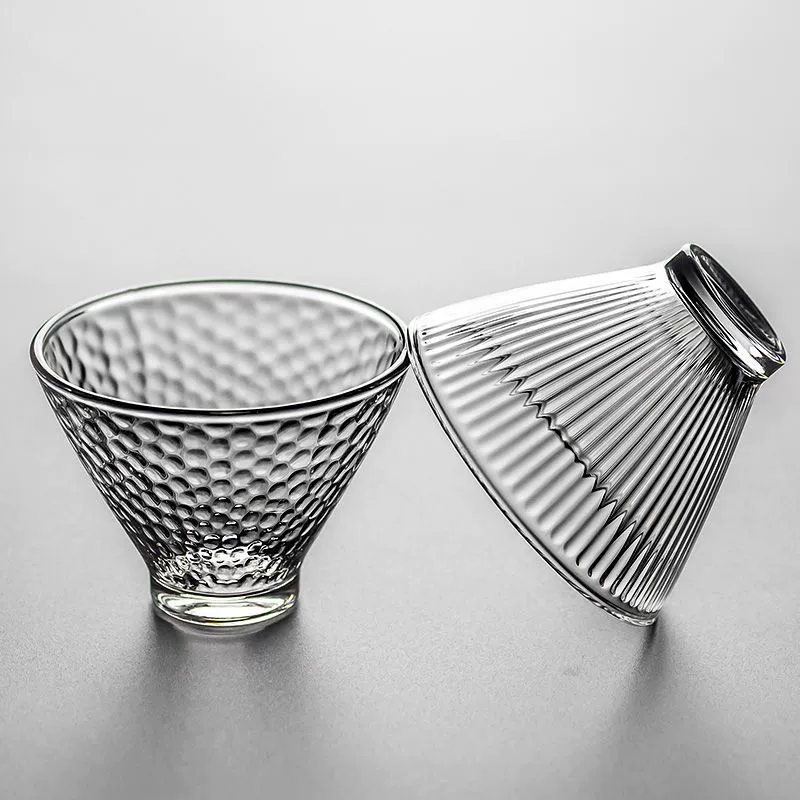 日式锤纹玻璃茶杯6只装客人杯喝茶功夫茶茶具小杯子透明水晶酒杯
