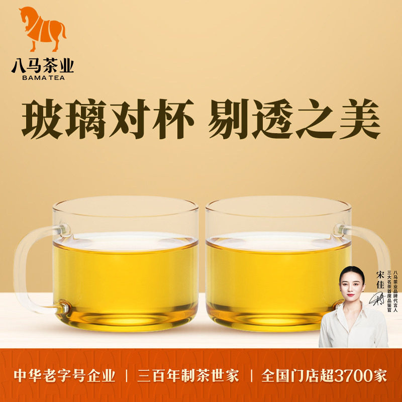 八马茶具明晰玻璃对杯茶具透明玻璃茶杯办公室居家喝茶小杯2个装