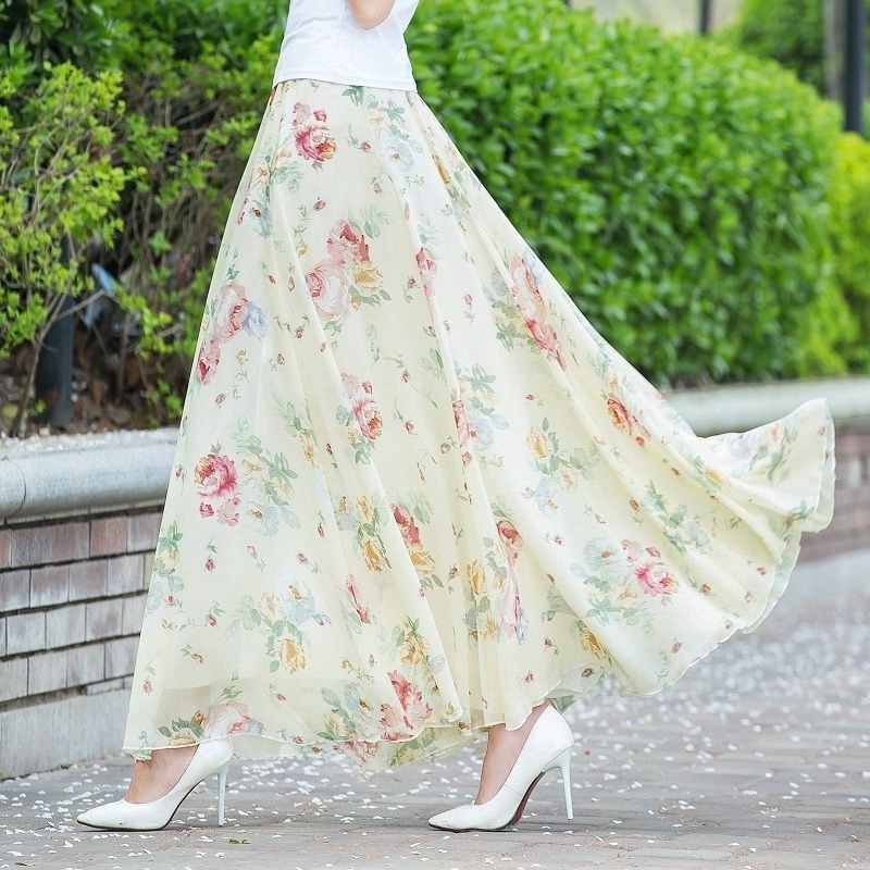 - 雪纺印花连衣裙夏中长款