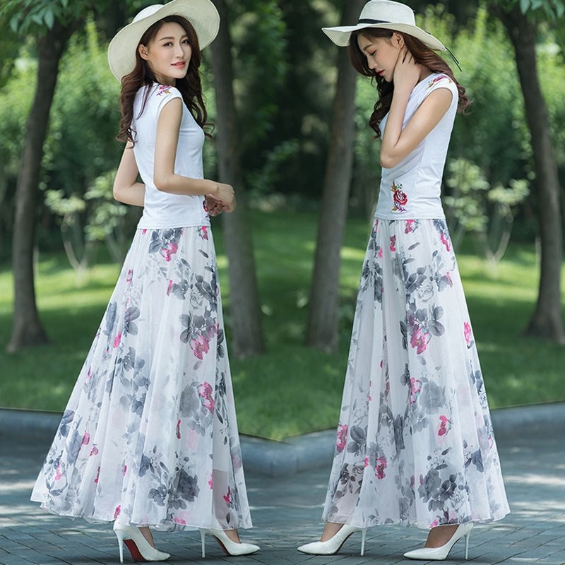 2025年夏新款雪纺半身裙长款大码裙子孕妇装碎花大摆女沙滩裙长裙