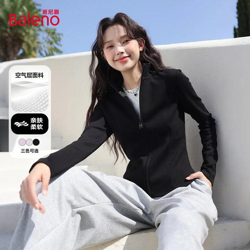 班尼路修身外套女2026新款春季短款立领开衫卫衣空气层运动上衣M