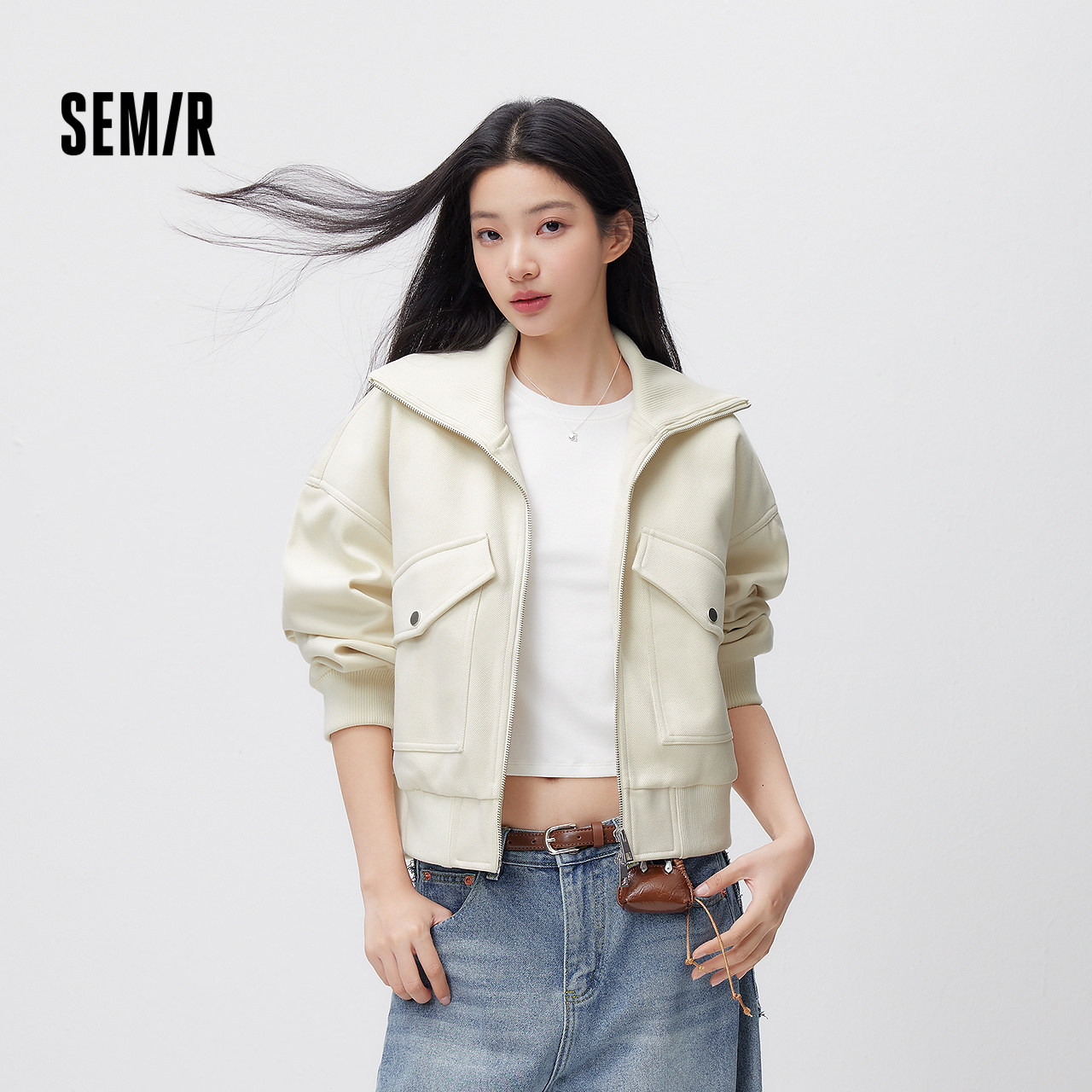 都市护身服|森马外套女春季三防防风纯色立领抽绳上衣简约风夹克