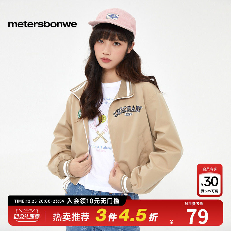 美特斯邦威时尚外套女春季新款长袖翻领夹克抽绳立领宽松短款上衣