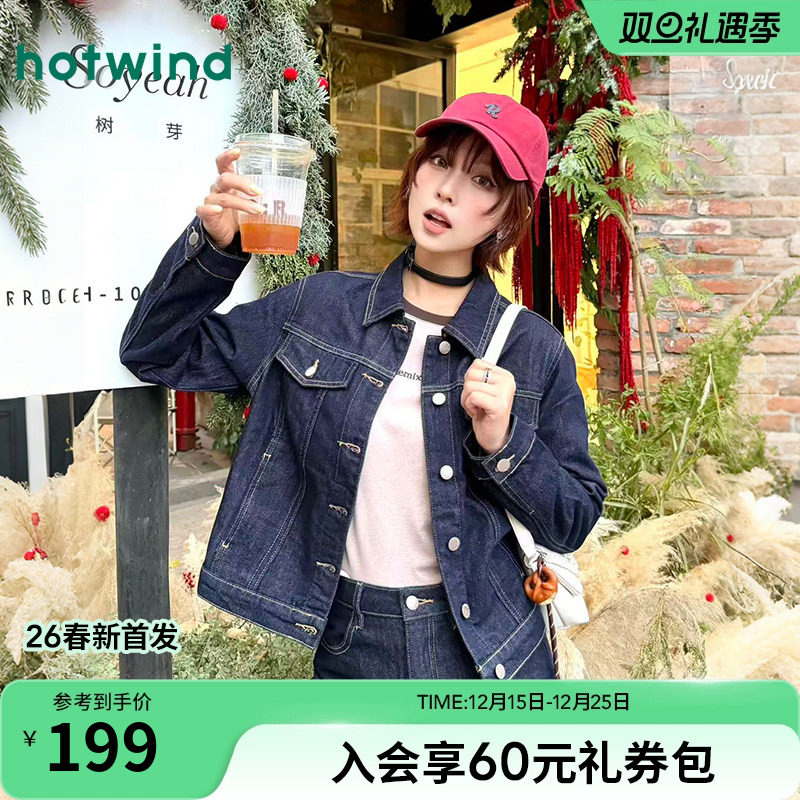 热风女士牛仔夹克外套上衣2026年春季新款经典复古美式牛仔外套