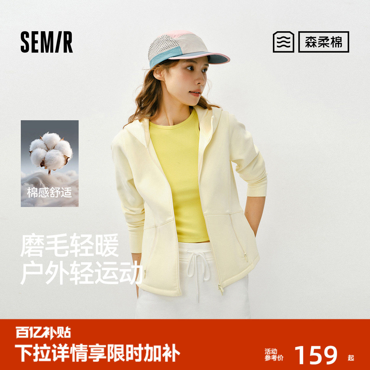 森柔|森马外套女春季纯色磨毛分割紧身连帽2026新款简约温柔夹克