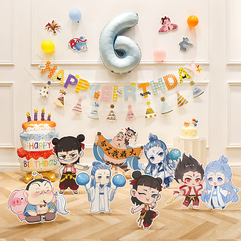 哪吒主题男宝宝周岁生日布置装饰派对氛围KT板摆件气球背景墙场景
