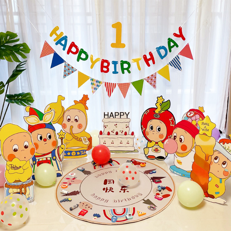 宝宝周岁生日布置装饰家庭版女宝男孩背景墙kt板婴儿抓周道具全套