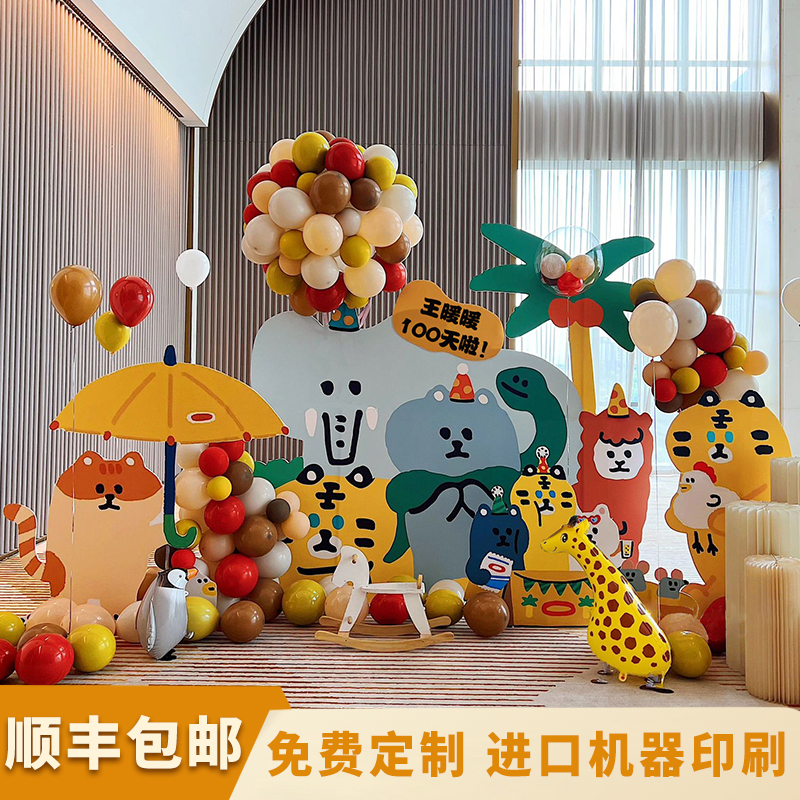 卡通动物男女宝宝周岁生日布置装饰背景墙满月百日宴布置kt板定制