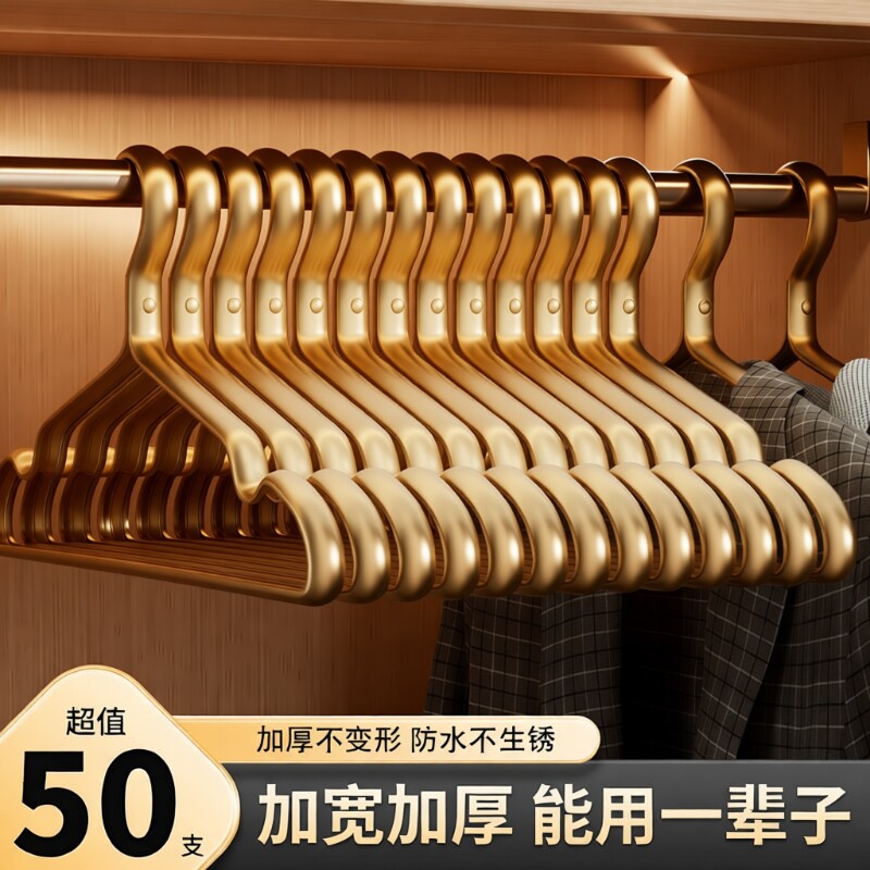 50只装太空铝合金衣架家用挂衣防滑无痕金属衣挂金色轻奢晾衣撑子