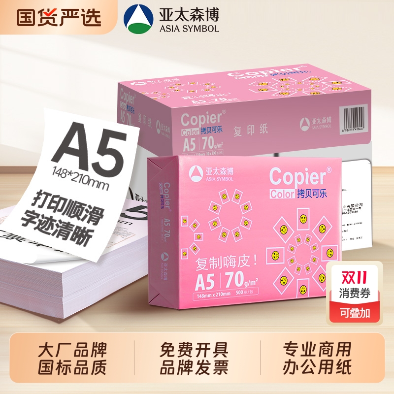 亚太森博A5打印纸 会计凭证打印纸 整箱批发 复印纸70g80g 医院处方纸 单据打印 出库配送单草稿纸办公用纸