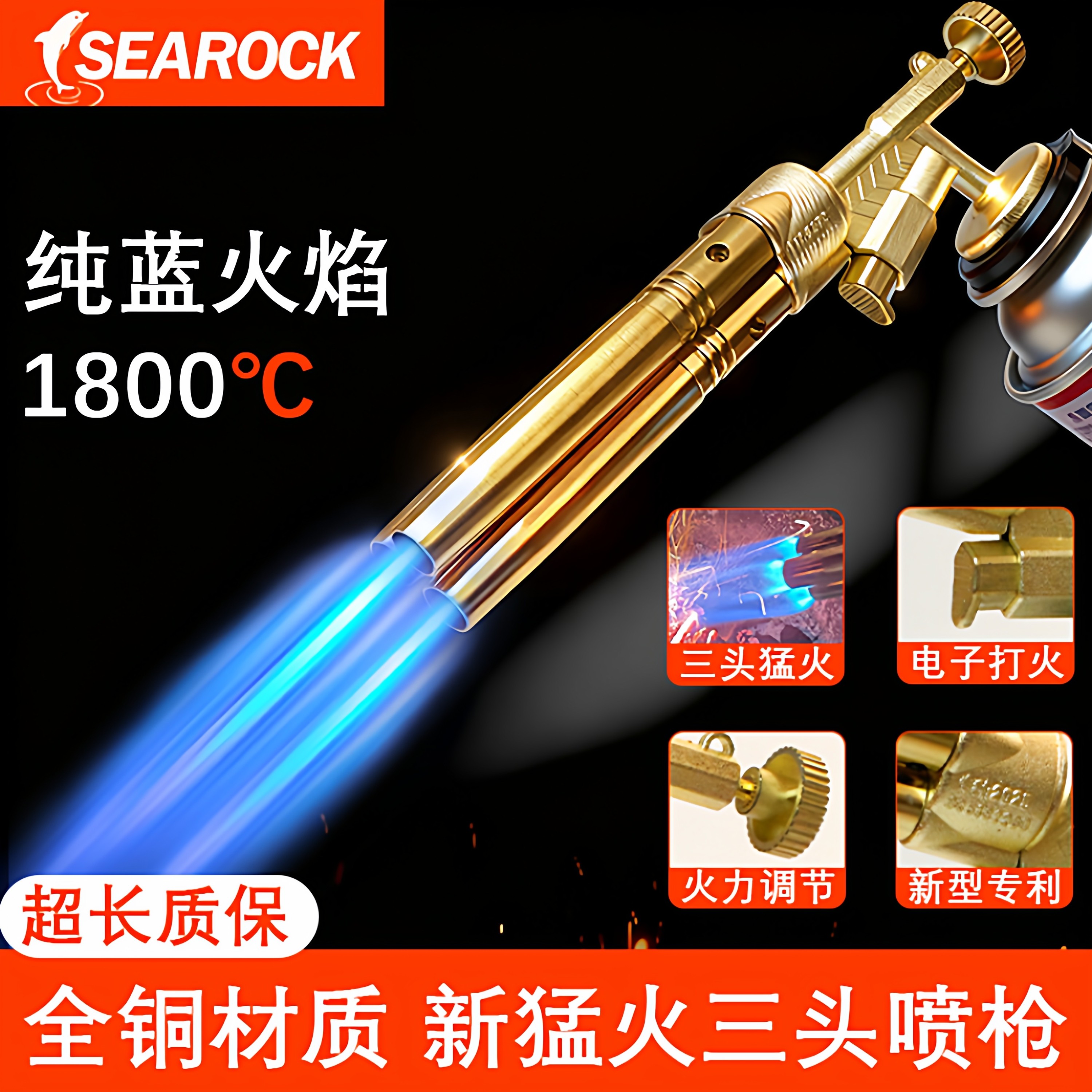 三头喷枪烧毛家用手持喷火枪头烤枪点碳烘焙全铜点火器卡式气罐枪