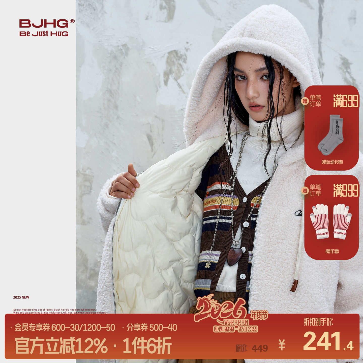 BJHG不计后果仿羊羔绒羽绒服男款冬季新款保暖防风90白鸭绒外套女