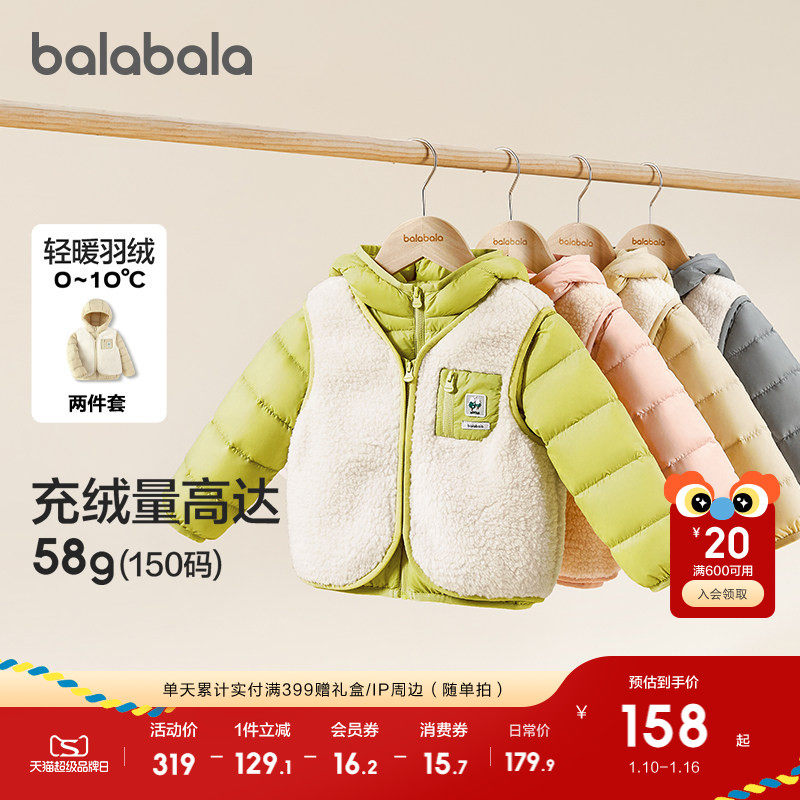 巴拉巴拉童装儿童羽绒服男童女童宝宝两件套冬连帽外套保暖羊羔绒