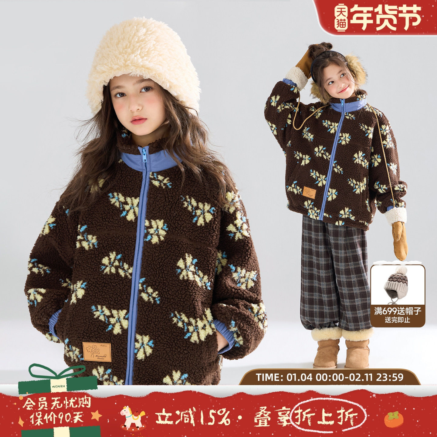 MUCMUKN【雪屋森林】花朵提花羊羔绒外套满印棉服休闲女童冬新款