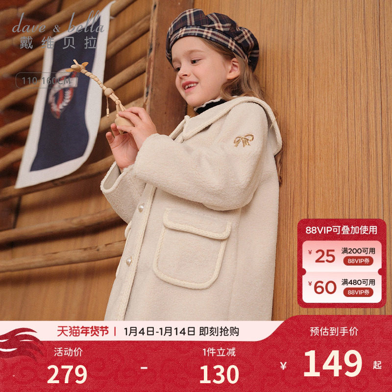 戴维贝拉女童外套2026冬装儿童毛绒上衣女孩仿羊羔毛长袖衣服童装