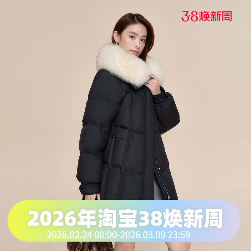 波司登2024冬款女一手长都市女人味狐狸毛领大翻领廓形时尚羽绒服