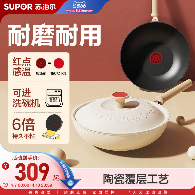 苏泊尔不粘锅炒锅家用炒菜锅电磁炉专用燃气煤气灶适用锅具平底锅