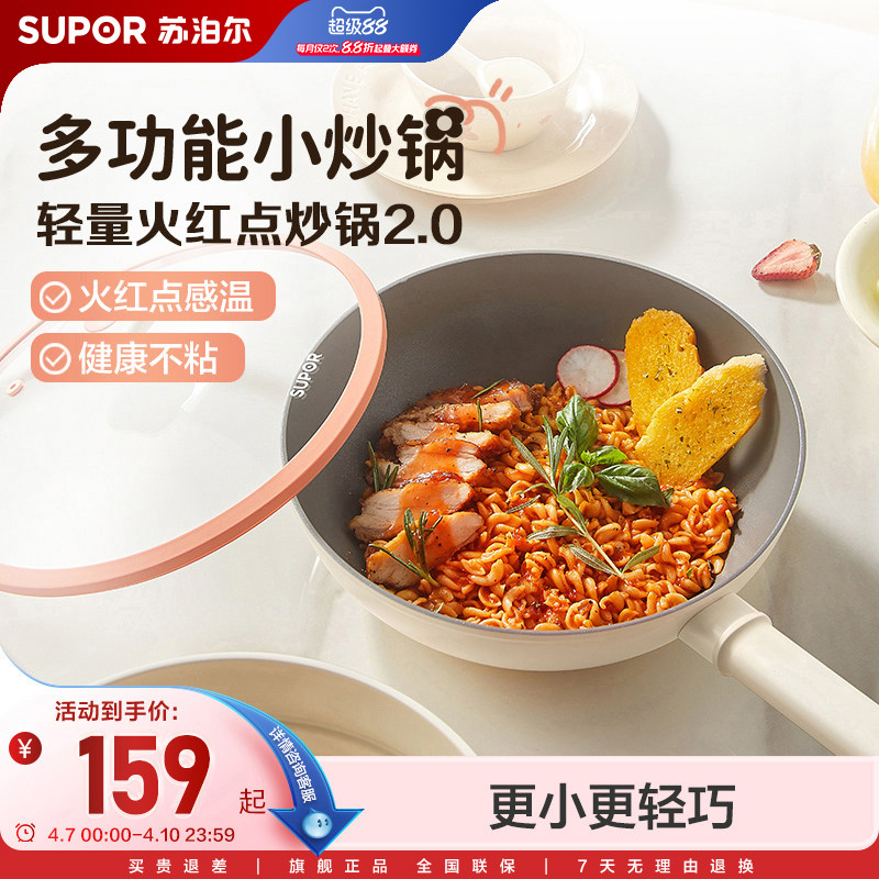 苏泊尔有钛铁不粘婴儿辅食小炒锅无涂层一人食专用多功能家用炒菜