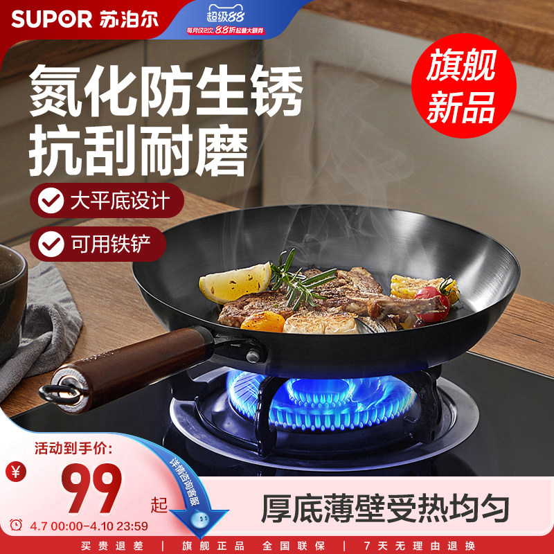 苏泊尔铁锅炒菜锅家用传统老式新中式炒锅无涂层不锈精铁锅燃气灶