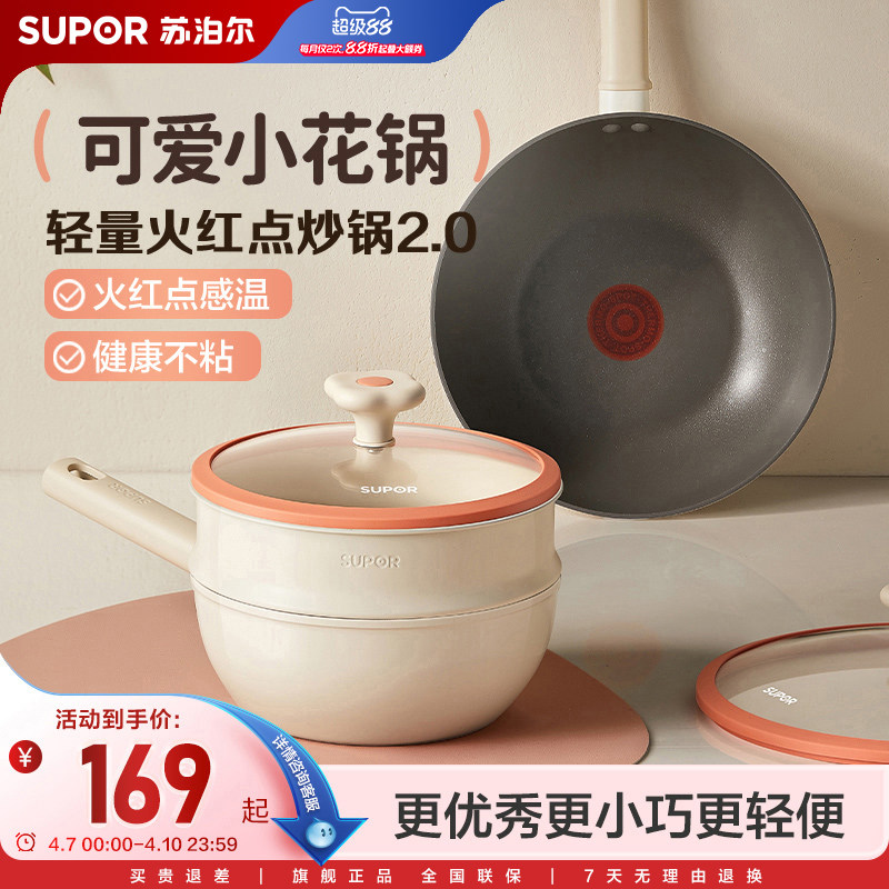 【小花锅】苏泊尔不粘锅煎锅炒锅奶锅平底锅家用加深锅电磁炉通用