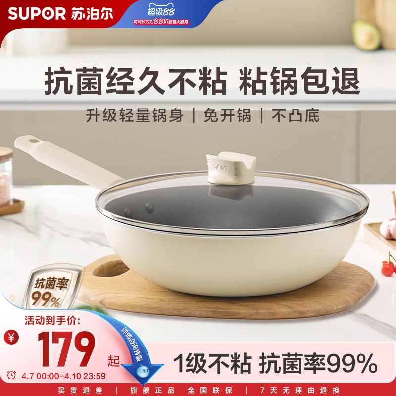 苏泊尔不粘锅炒锅抗菌家用炒菜锅电磁炉专用燃气煤气灶适用平底锅